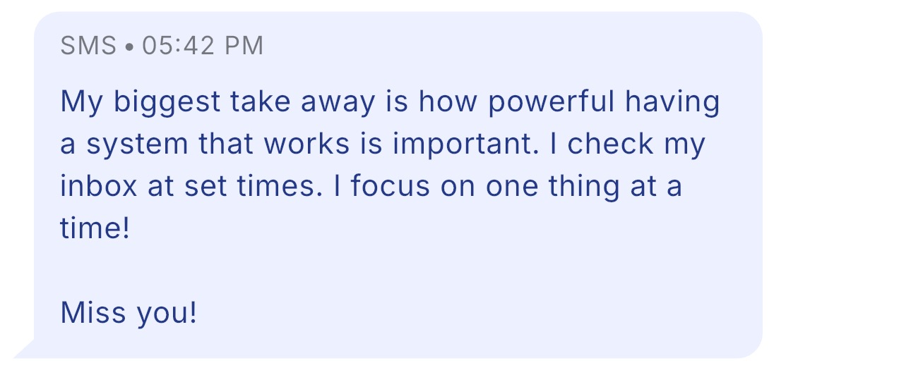 “I went from 150 tasks in my inbox on a Saturday, to less than 20 in my first week using this system.”